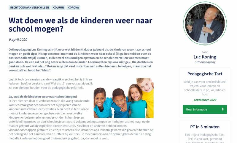 In december 2019 is er in de serie over echt kleuteronderwijs een artikel geplaatst over spel en spelen. Dat artikel is gelezen door ruim 6000 geïnteresseerden.
